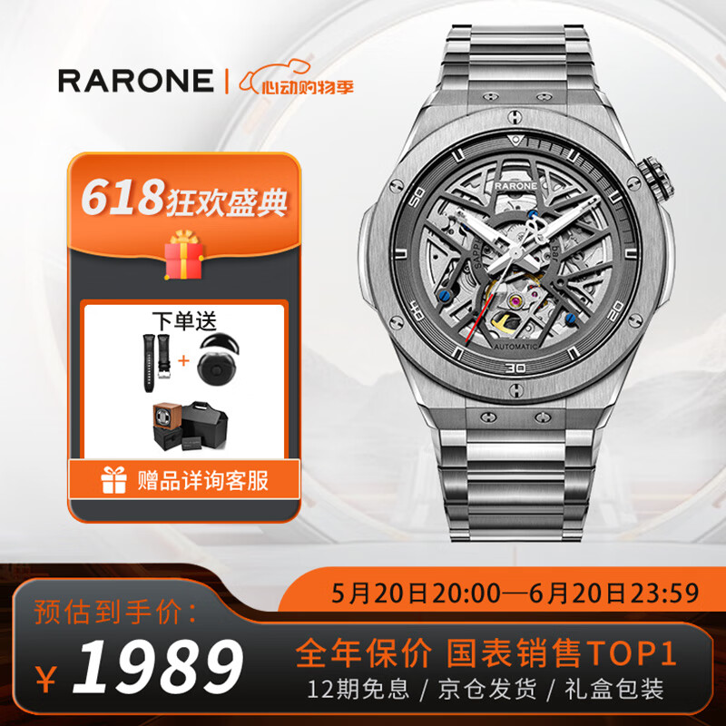 雷诺(RARONE)手表 解构派双子星RebelX男士机械手表钢带礼盒装520情人节礼物价格:2339.00元!
