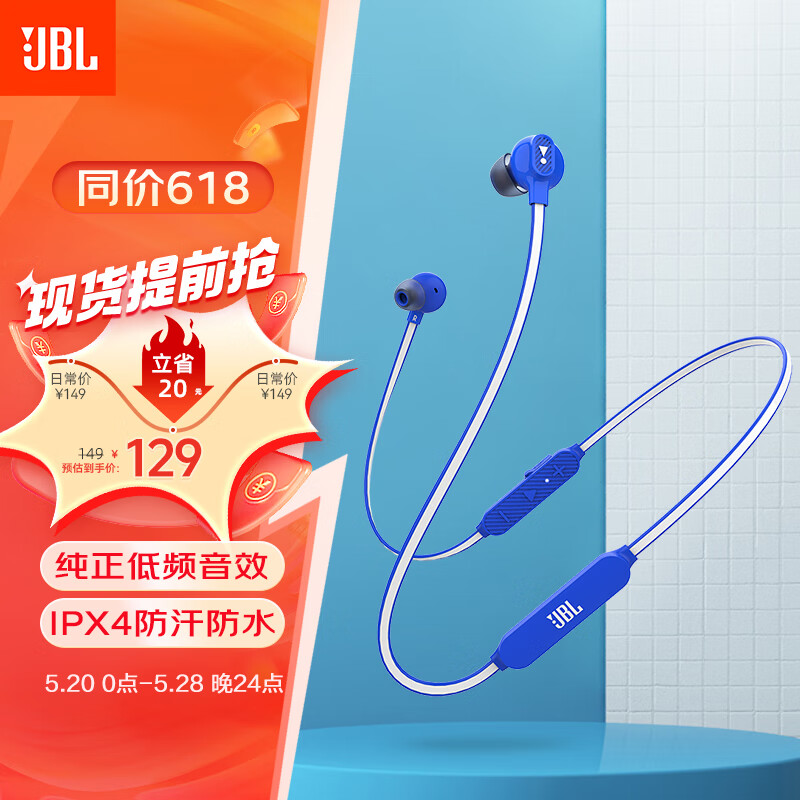JBL C135BT 无线蓝牙耳机 入耳式带麦通话 跑步运动颈挂式磁吸收纳 通用苹果安卓手机 梦幻蓝价格:149.00元!
