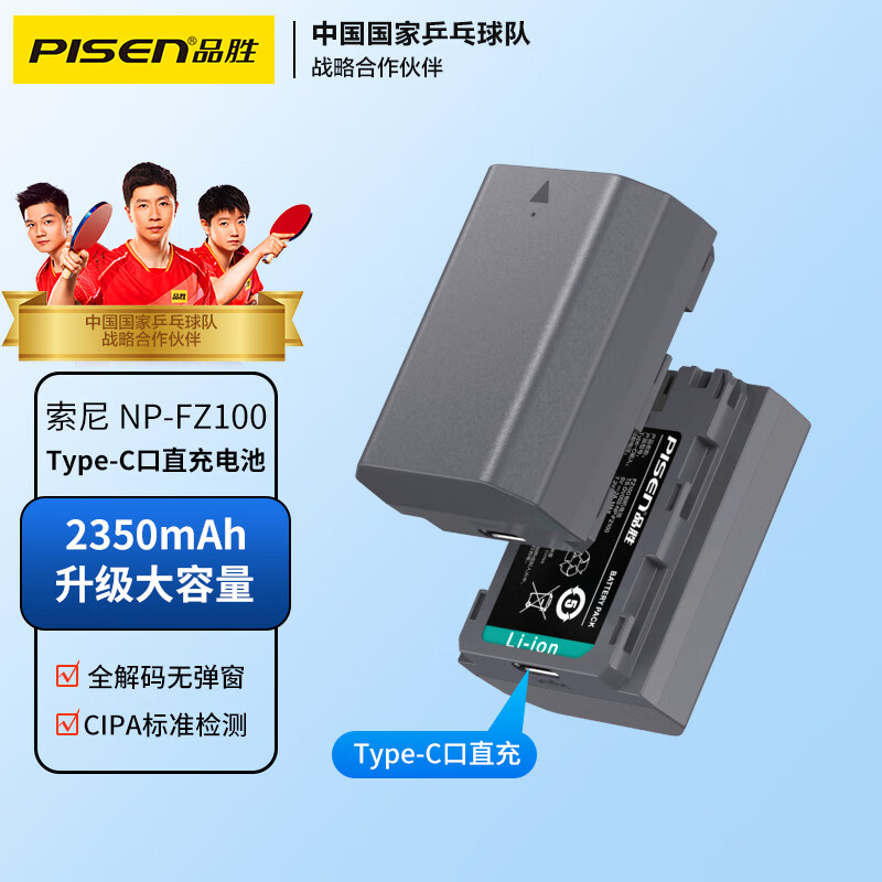 品胜(PISEN)NP-FZ100索尼自带Type-C口直充相机电池USB-C口 sony a7m4 a7m3 a7c a7r3 a7r4 a9价格:219.00元!