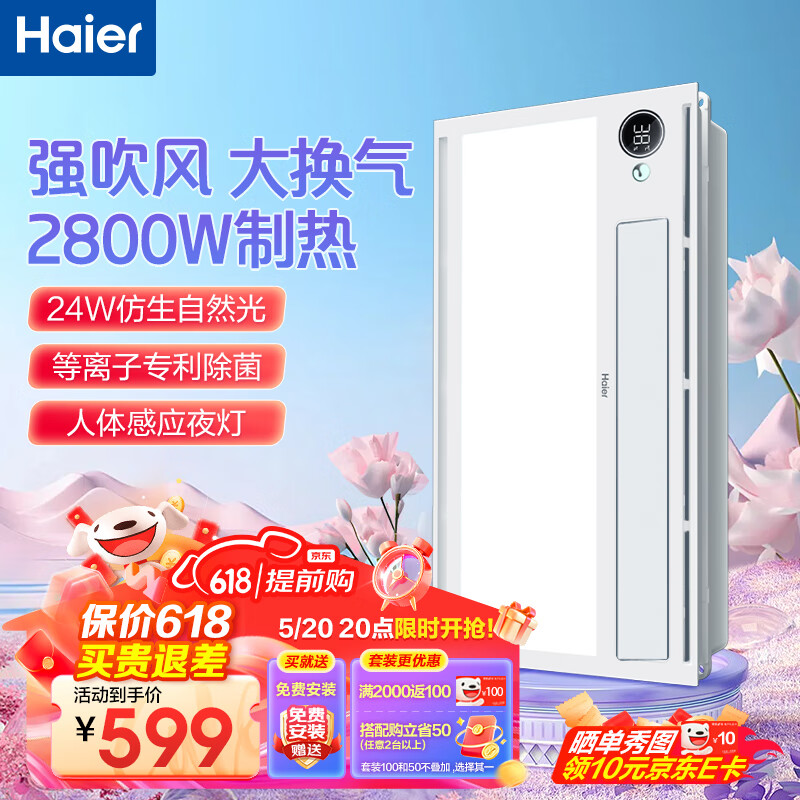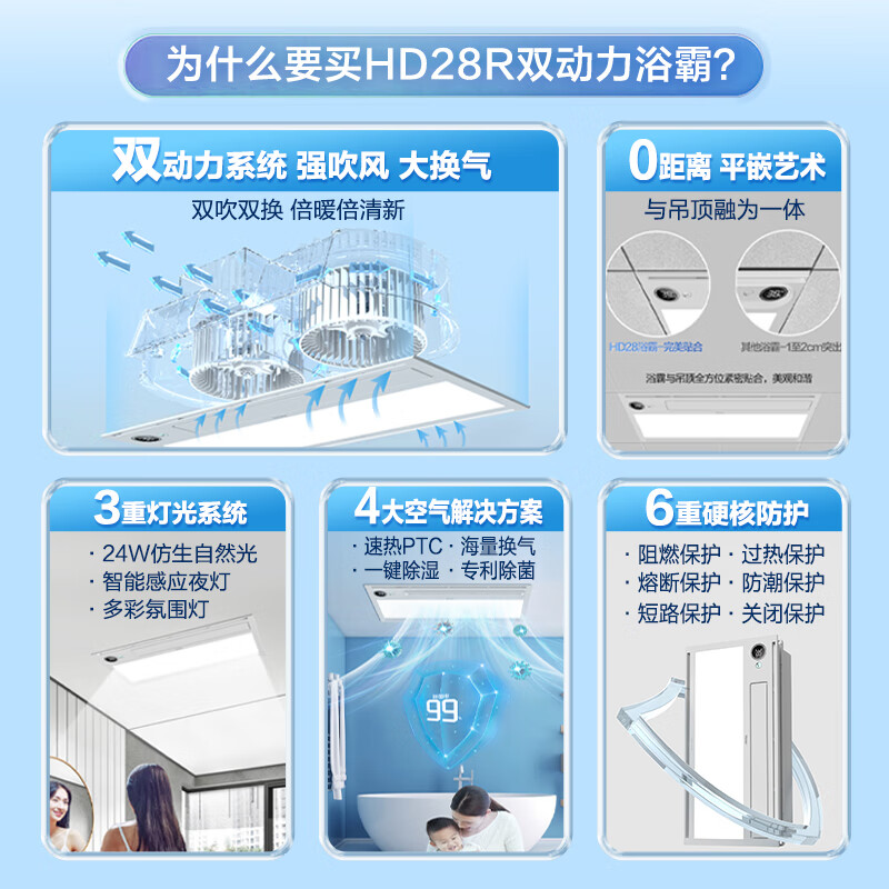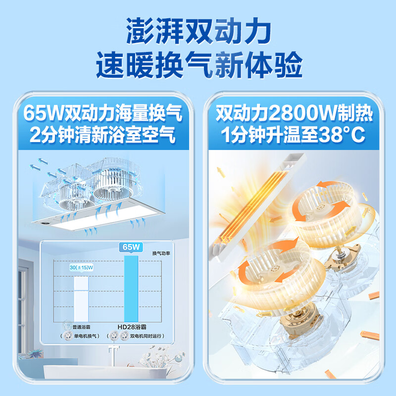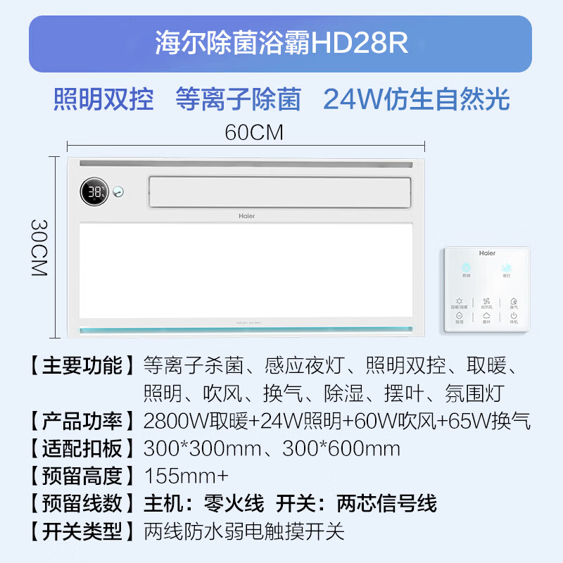 海尔风暖浴霸暖风照明排气一体卫生间暖风机浴室集成吊顶双电机HD28R价格:649.00元!