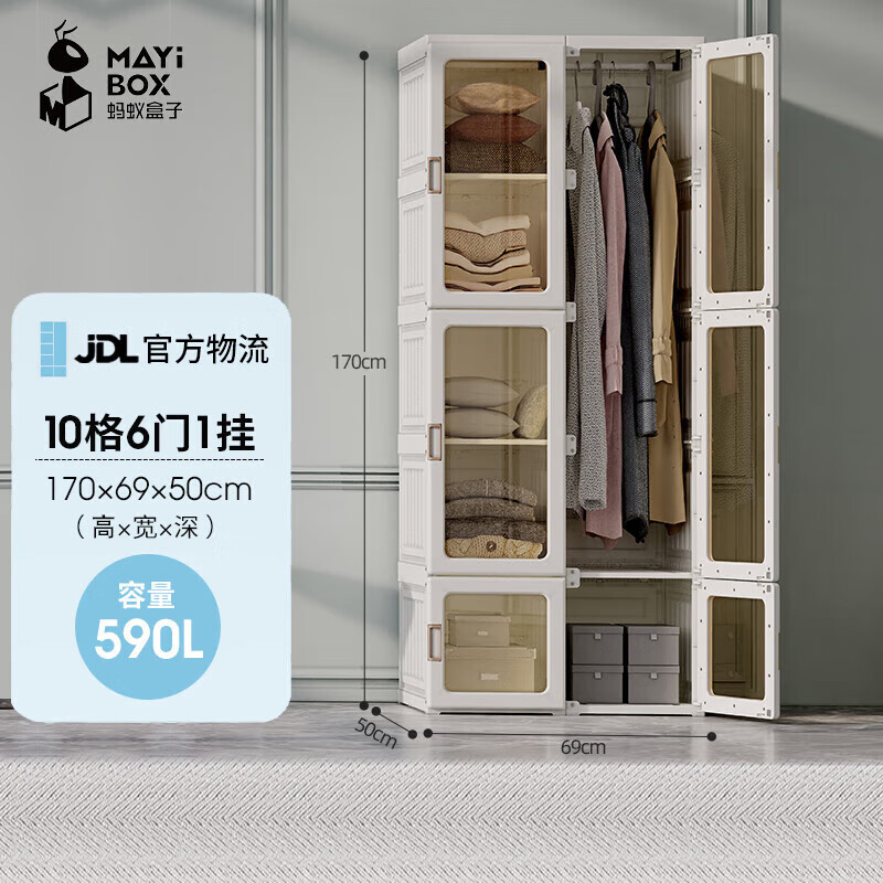 蚂蚁盒子(MAYIHEZI)免安装可折叠塑料成人简易衣柜出租房衣服收纳 10格6门1挂价格:600.00元!