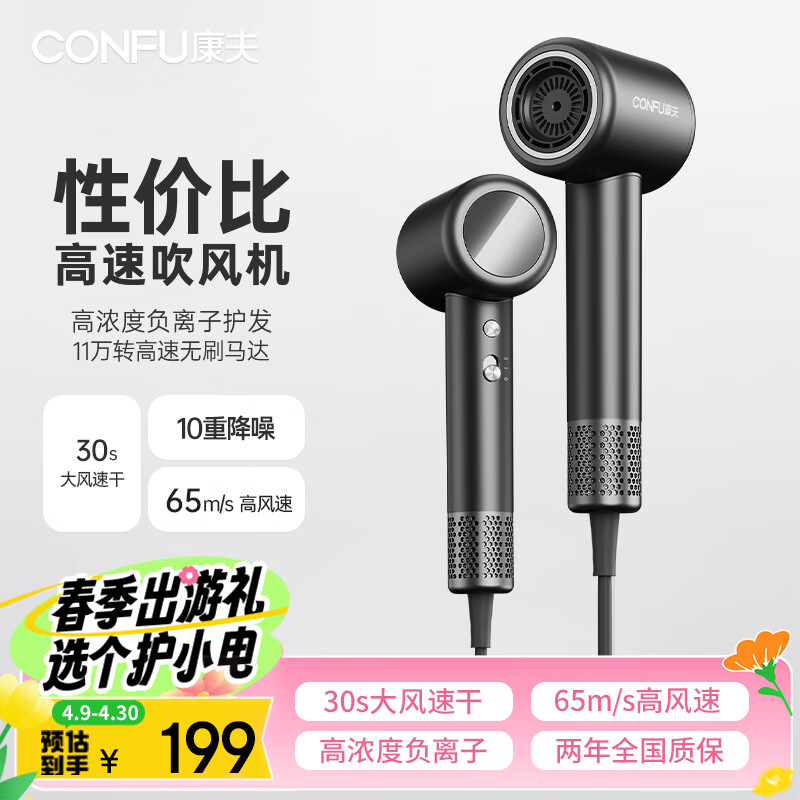 康夫(CONFU)11万转高速电吹风机家用速干大风力负离子护发送女友生日礼物吹风筒 KF-FC黑价格:300.00元!