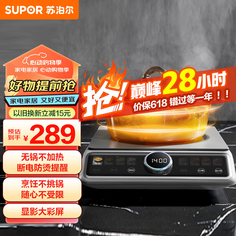 苏泊尔(SUPOR)家用电磁炉 火锅炉 2200W大功率 不挑锅具 爆炒炒菜 轻音 智能定时 多功能家用电陶炉C22-CS52价格:289.00元!