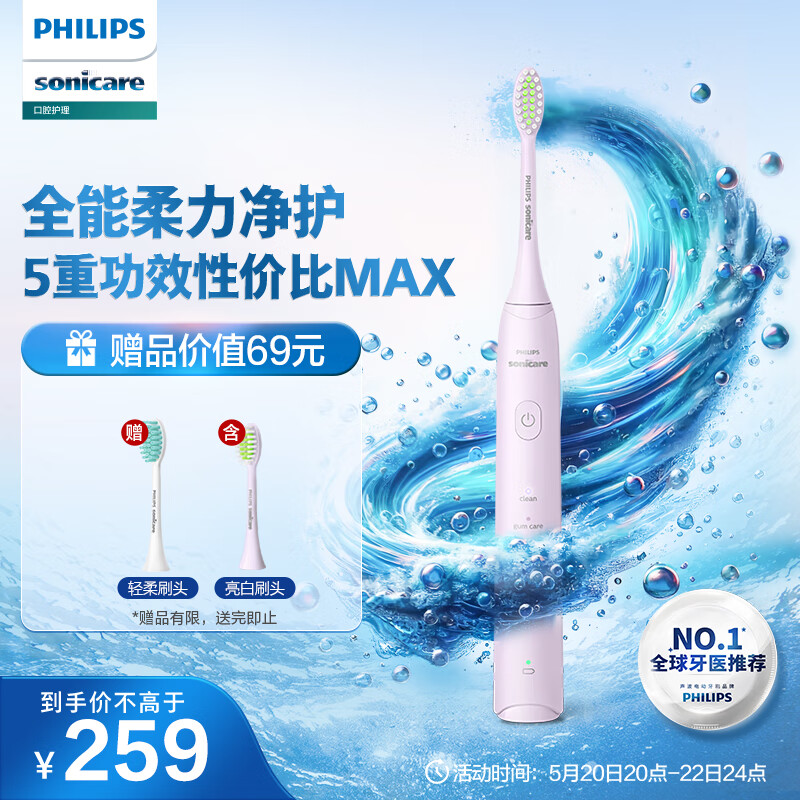 飞利浦(PHILIPS)电动牙刷S3成人 520情侣送男/女友 母亲节礼物 软毛柔和亮白刷头5效宝藏刷 绝绝紫HX2471/02价格:279.00元!