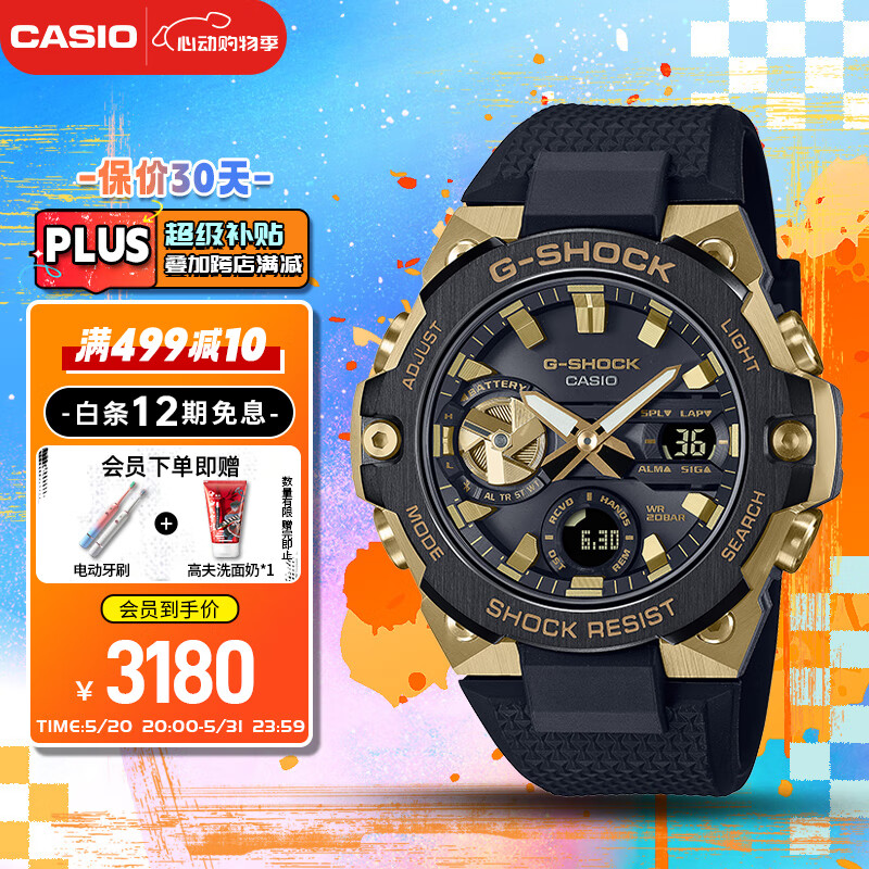 卡西欧(CASIO)手表男士G-SHOCK钢铁坚毅之心运动电子表520礼物GST-B400GB-1A9价格:3190.00元!