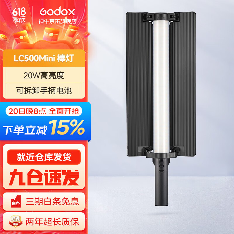 神牛(Godox) LC500Mini补光灯棒灯补光棒手持摄影灯户外便携直播拍照 人像美颜灯双色温版 LC500Mini双色温【黑色机身】 标配价格:598.00元!