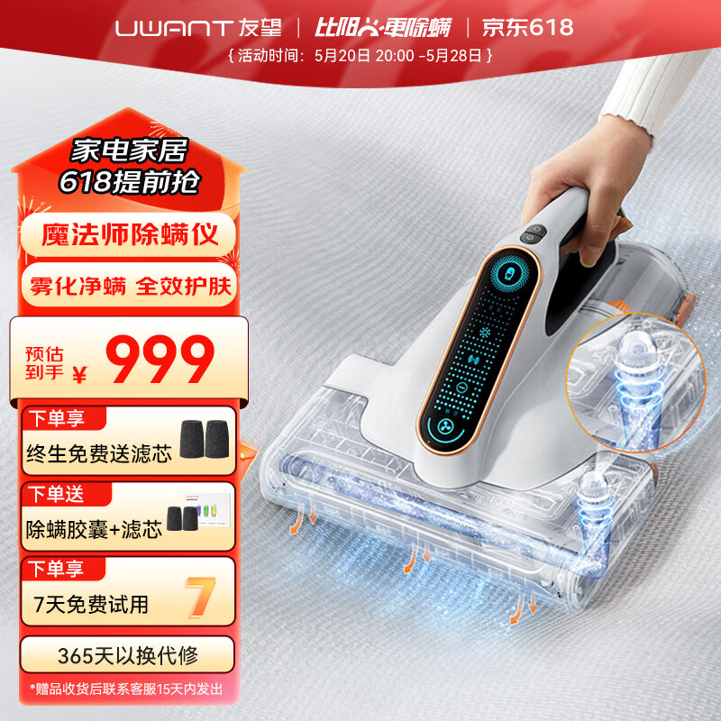 uwant友望除螨仪双杯尘螨分离家用床上紫外线杀菌除螨机超声波去螨虫大吸力吸尘神器M400魔法师价格:1099.00元!
