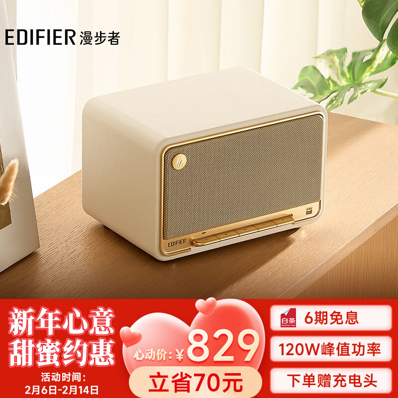 漫步者(EDIFIER)M330 高品质复古蓝牙音箱 一体式大功率音响 家庭无线音响 桌面音响 户外音响 贝母白 情人节礼物价格:829.00元!