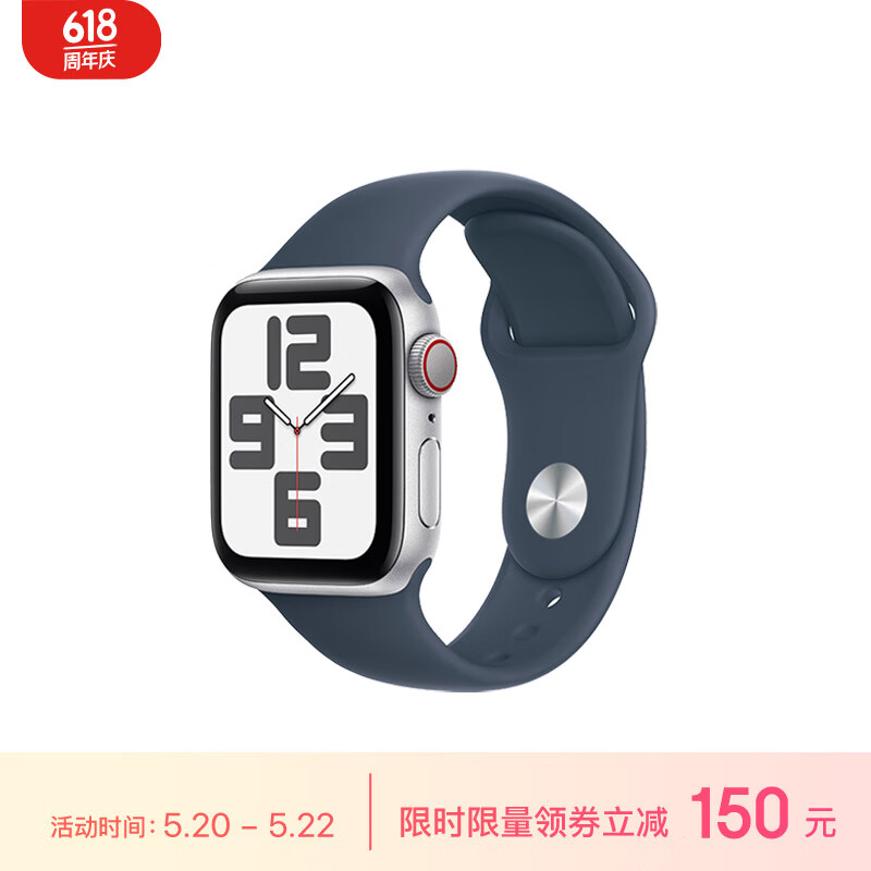 Apple/苹果 Watch SE 2023款智能手表GPS+蜂窝款40毫米银色铝金属表壳风暴蓝色运动型表带M/L MRGN3CH/A价格:2399.00元!