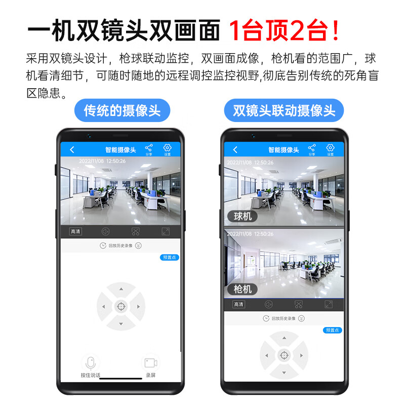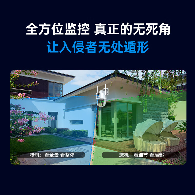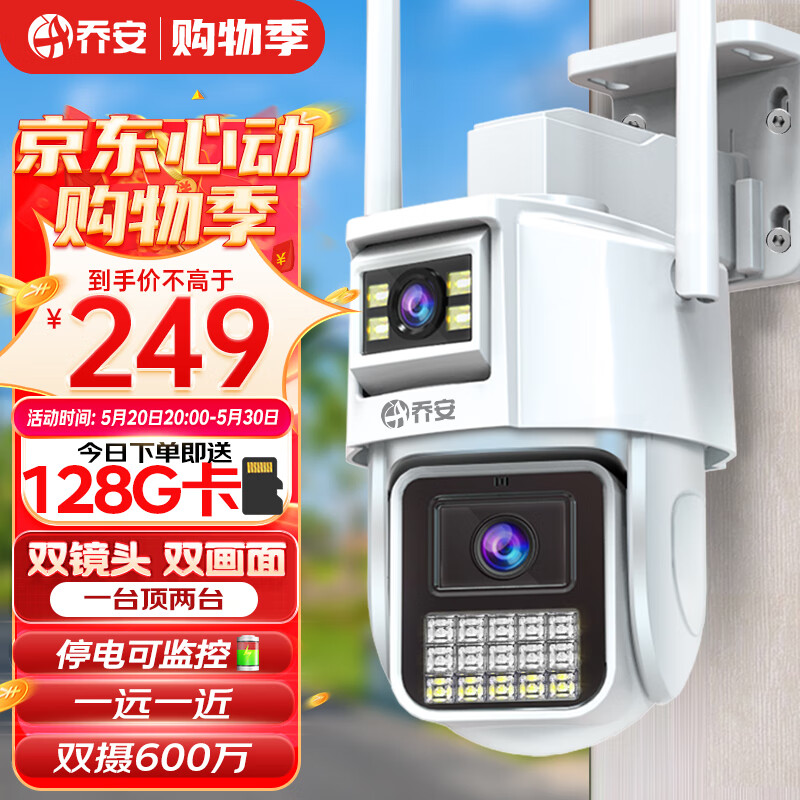 乔安监控无线wifi双摄像头户外高清监控器家用手机远程360度无死角带夜视全景自动旋转农村室外价格:249.00元!