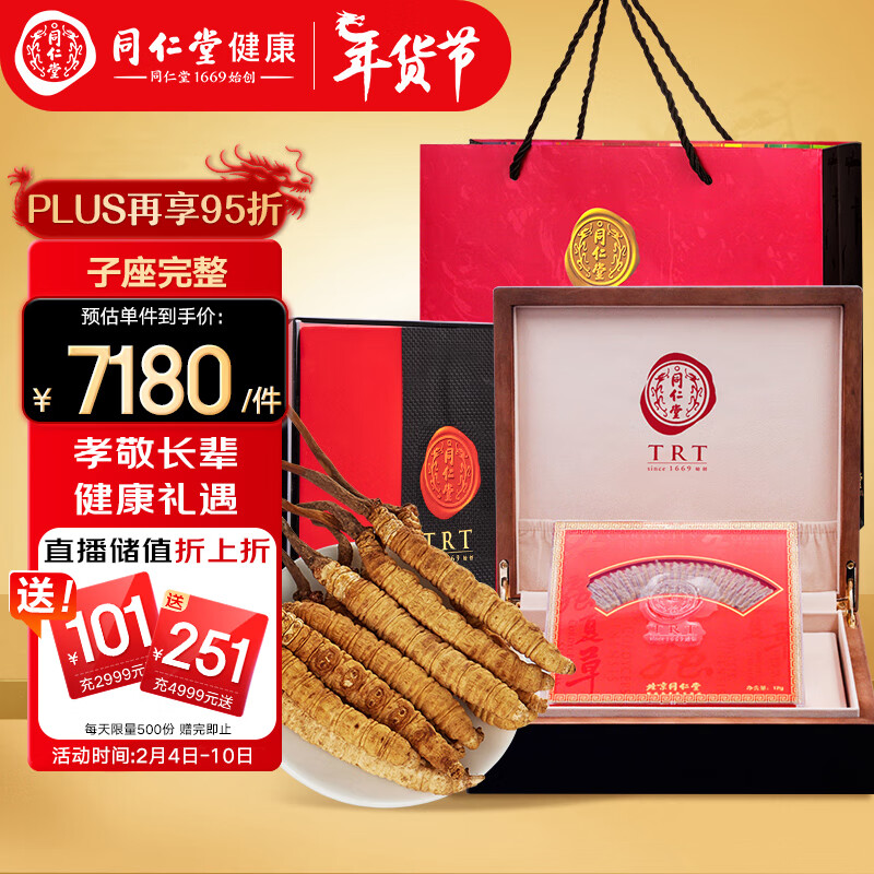 北京同仁堂【年货礼品】冬虫夏草-24/12g 虫草礼盒 虫体饱满 洁净度高 可泡酒磨粉 滋补品L送父母长辈送礼价格:7180.00元!