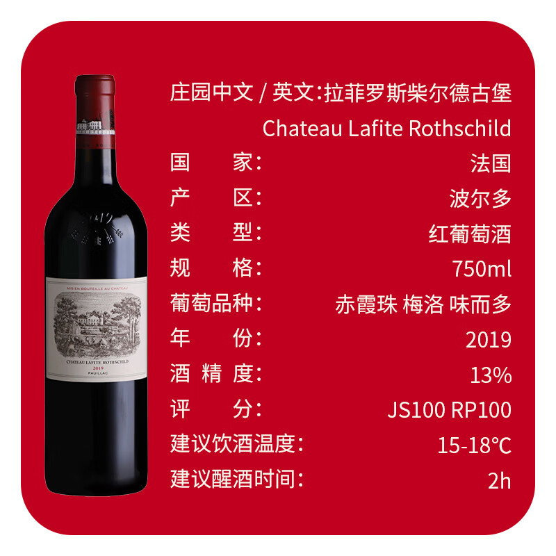 拉菲(LAFITE)大拉菲2019年红葡萄酒750ml法国波尔多梅多克一级庄 满分大年价格:6888.00元!