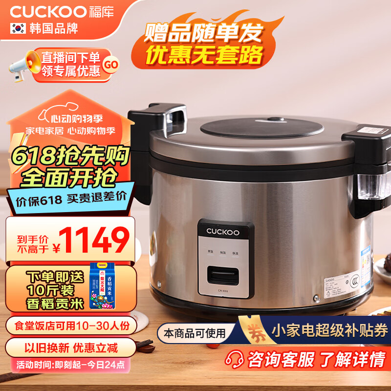 福库CUCKOO韩国品牌商用大容量商用电饭煲不糊底不粘锅学校食堂饭店餐厅大电饭锅16L30人份CR-3055价格:1349.00元!