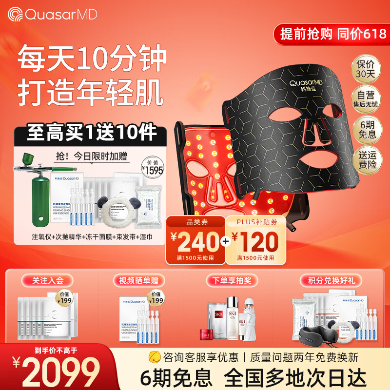 科施佳QuasarMD黑金面膜仪红光面罩面膜式美容仪光子嫩肤仪大排灯修护亮肤520女生情人节礼物实用送女友价格:2599.00元!