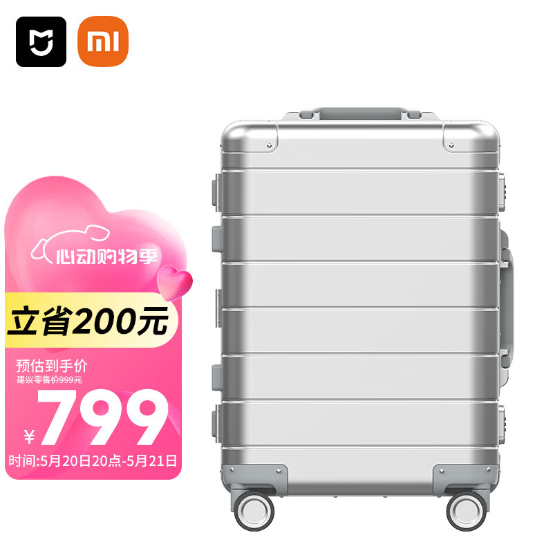小米行李箱铝镁合金拉杆箱金属旅行箱高端商务密码箱20英寸银色价格:799.00元!