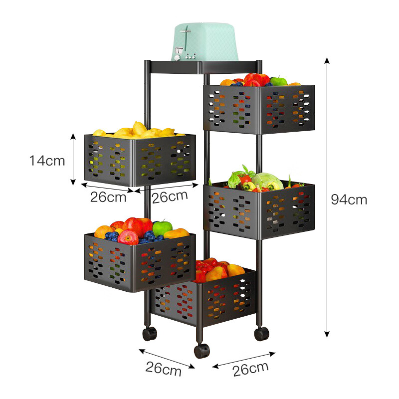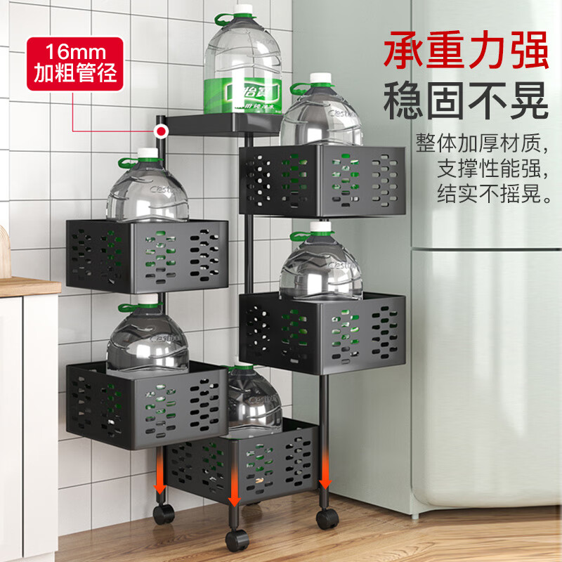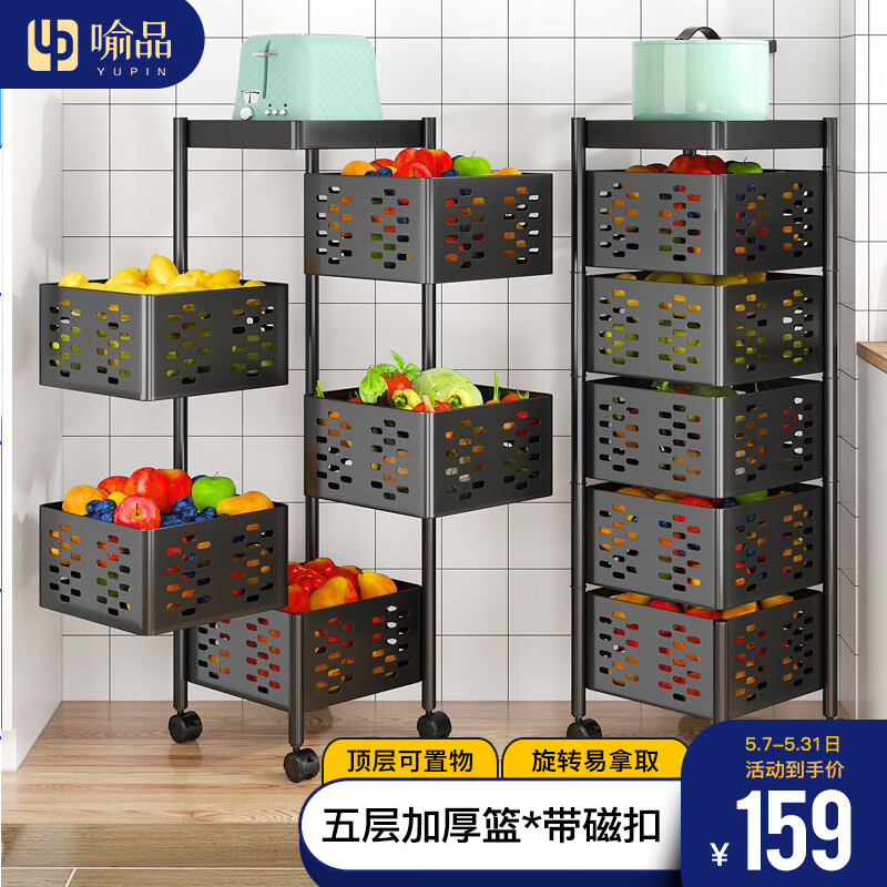 喻品置物架落地厨房蔬菜架收纳储物架菜篮子可移动小推车 ZW92五层方价格:169.00元!