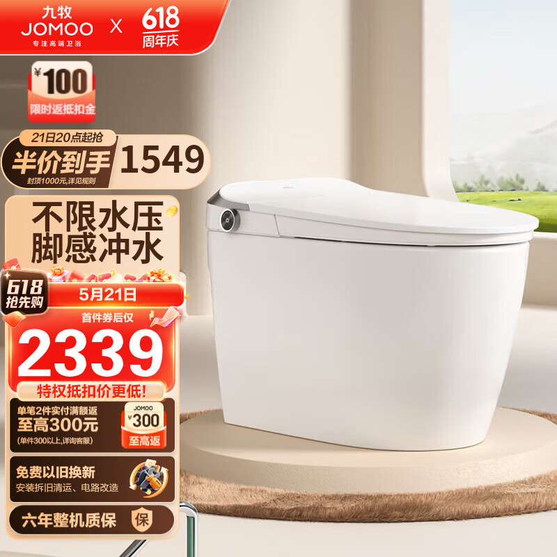 九牧(JOMOO)智能马桶一体机带水箱不限水压脚感冲水智能坐便器ZS520I 400坑距价格:3049.00元!