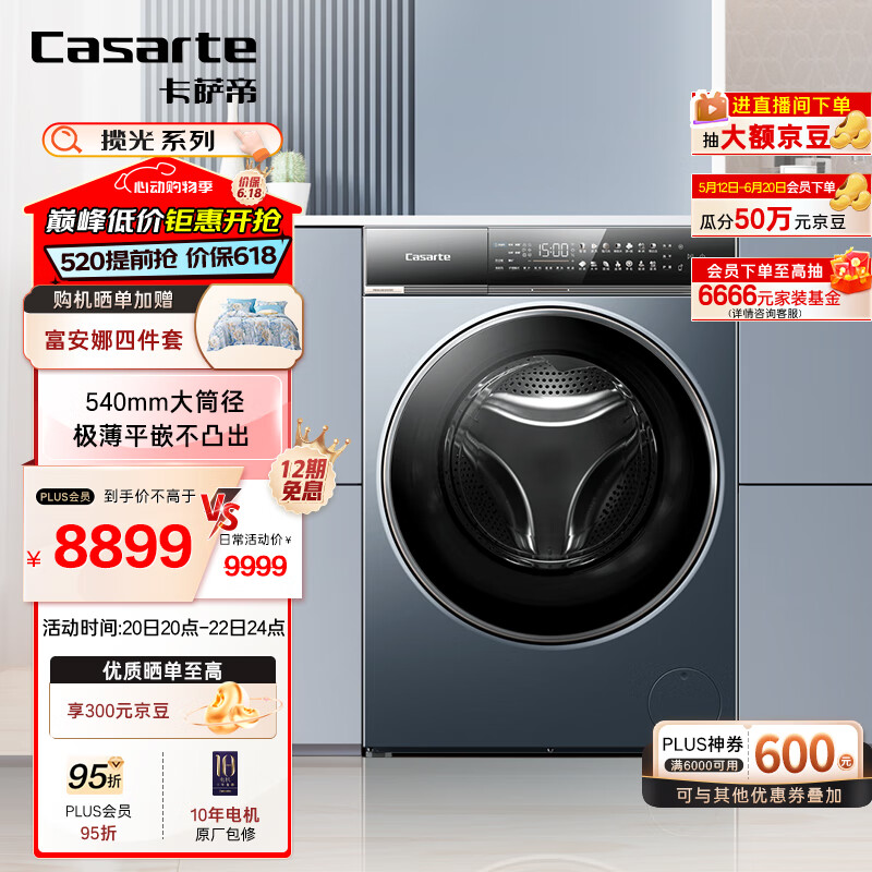 卡萨帝(Casarte)揽光L7滚筒洗衣机全自动家用 10公斤洗烘一体机 540大筒径超薄平嵌 精华洗快净省 C1 HDN10L7ELLU1价格:9999.00元!