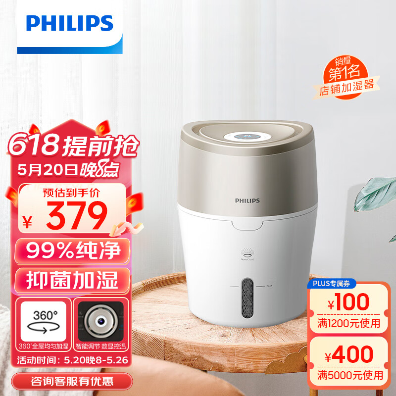 飞利浦 (PHILIPS)无雾加湿器 卧室低噪款 恒湿数显加湿器 母婴健康无菌 办公室卧室客厅家用 HU4803/00价格:379.00元!