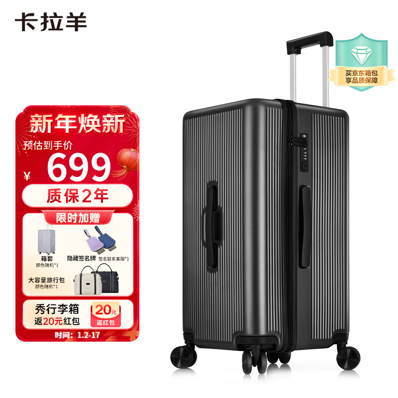 卡拉羊魔方体行李箱大容量30英寸巨能装拉杆箱男女旅行箱CX8110钢琴黑价格:799.00元!