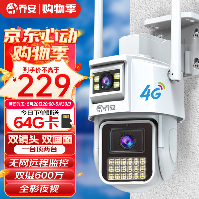 乔安高清监控摄像头室外防水监控器家用摄像机360度全景户外4g旋转云台无线球机手机远程价格:229.00元!