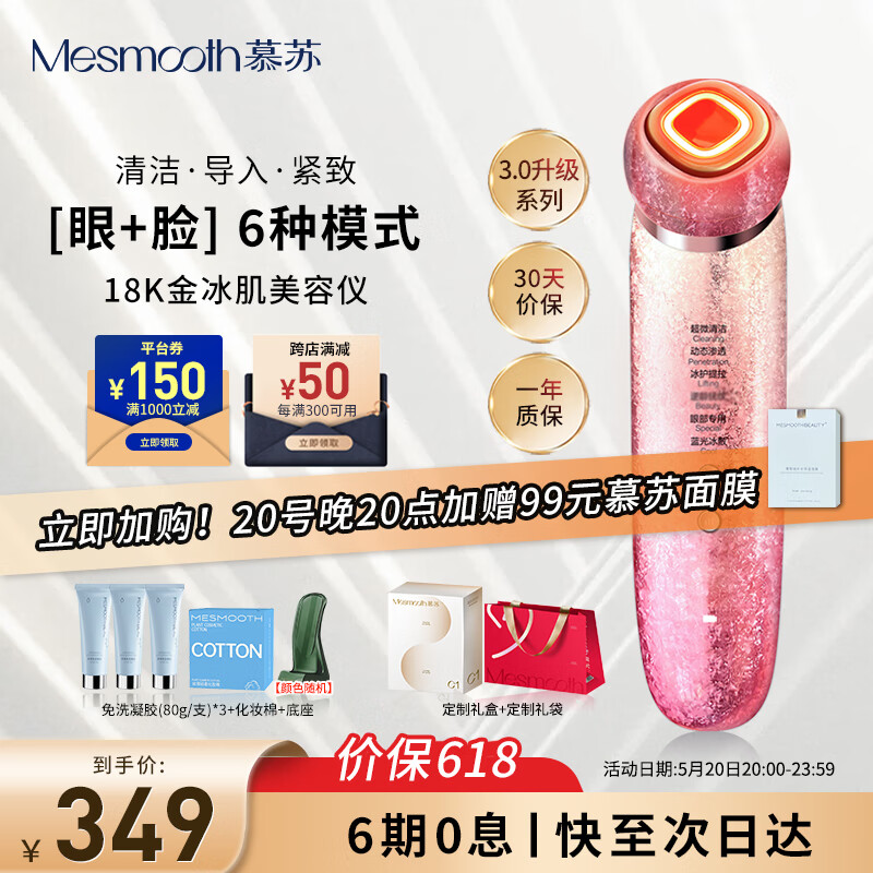 MESMOOTH慕苏美容仪器脸部按摩仪淡纹家用洁面部导入仪眼部嫩肤清洁520礼物 星钻红Pro(重磅上新)价格:399.00元!