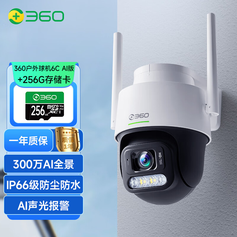 360 摄像头智能监控摄像机300W室外户外防水监控声光报警2K高清智能全彩夜视wifi户外球机6C价格:399.00元!