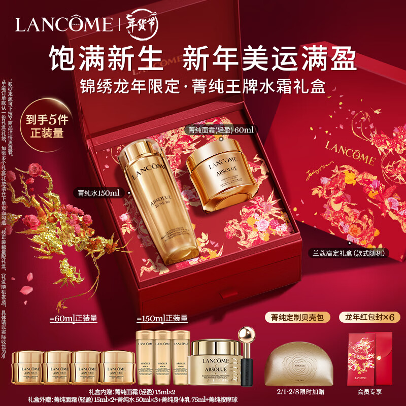兰蔻菁纯化妆品护肤套装(水150ml+面霜60ml)抗皱礼盒生日新年礼物女价格:3850.00元!