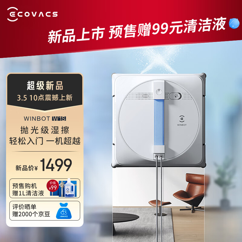 科沃斯擦窗机器人窗宝W1S自动擦玻璃喷水湿擦家用擦窗神器擦玻璃神器机器人WG819-14价格:1499.00元!