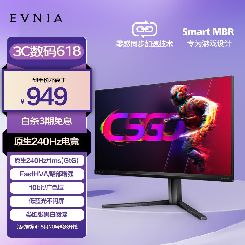飞利浦 24.5英寸10Bit原生240Hz FastHVA 快速液晶1ms全高清 旋转升降 EVNIA游戏电竞显示器25M2N3200W价格:999.00元!