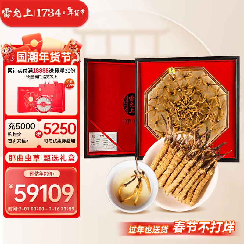 雷允上 冬虫夏草20/100g 西藏那曲虫草AAAA级插秧 干货虫草 年货礼盒送礼长辈礼品价格:64249.00元!