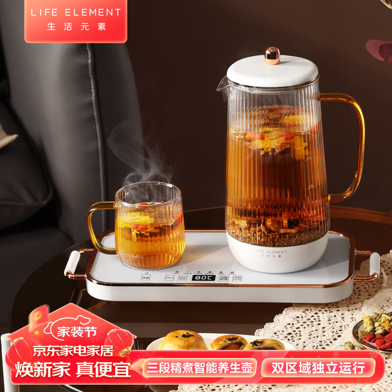 生活元素(LIFE ELEMENT)多功能养生壶 煮茶器 煮茶壶 煎药壶 1.2L容量 电茶壶玻璃烧水壶智能电热水壶 D65价格:269.00元!