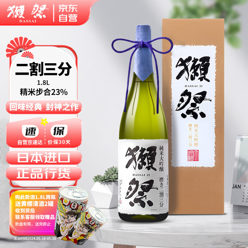 獭祭二割三分23 纯米大吟酿 日本原装进口清酒1.8L/1800ml 盒装价格:999.00元!