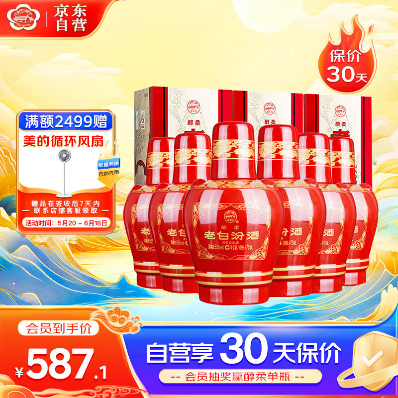 汾酒 老白汾醇柔 清香型白酒 53度 475ml*6瓶 整箱装价格:618.00元!