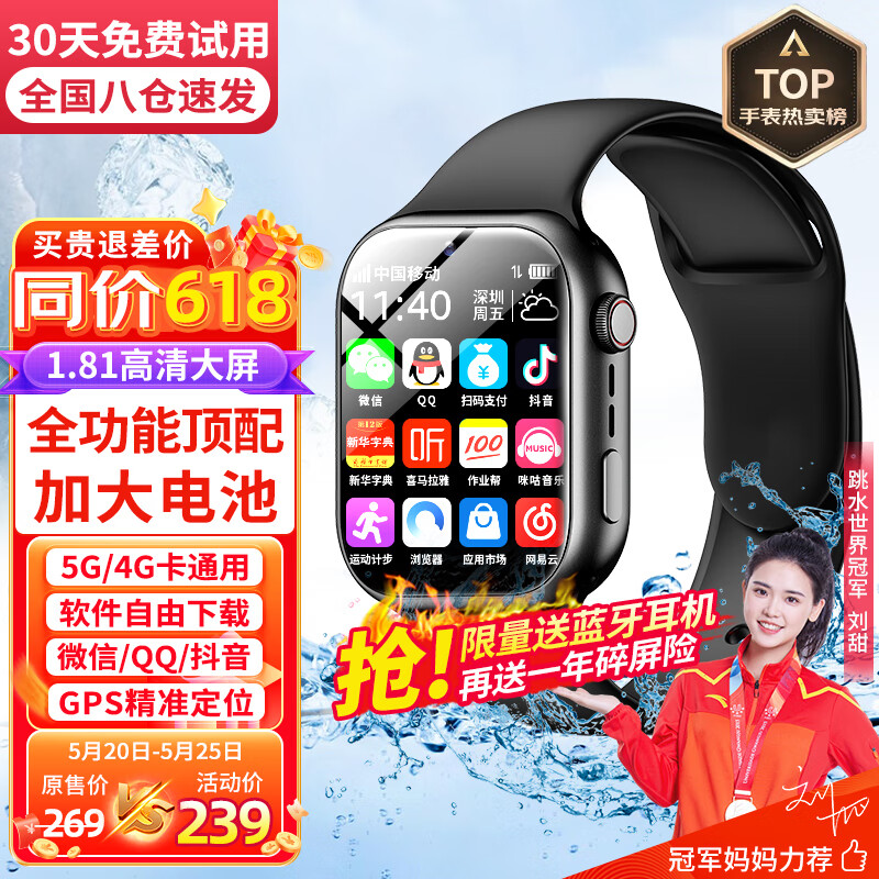 爱百分【无游戏长待机】儿童智能电话手表插卡5G4G卡通用wifi下载学生多功能精准定位青少年手表礼物 顶配版【电池加大+全功能可下载+微信抖音+GPS】 1.81大屏无游戏无广告价格:239.00元!
