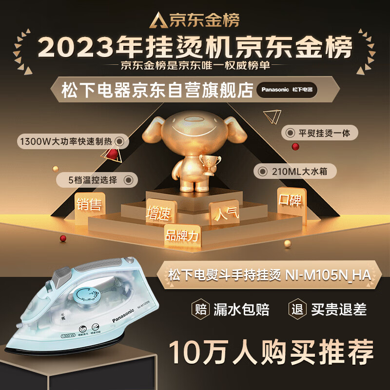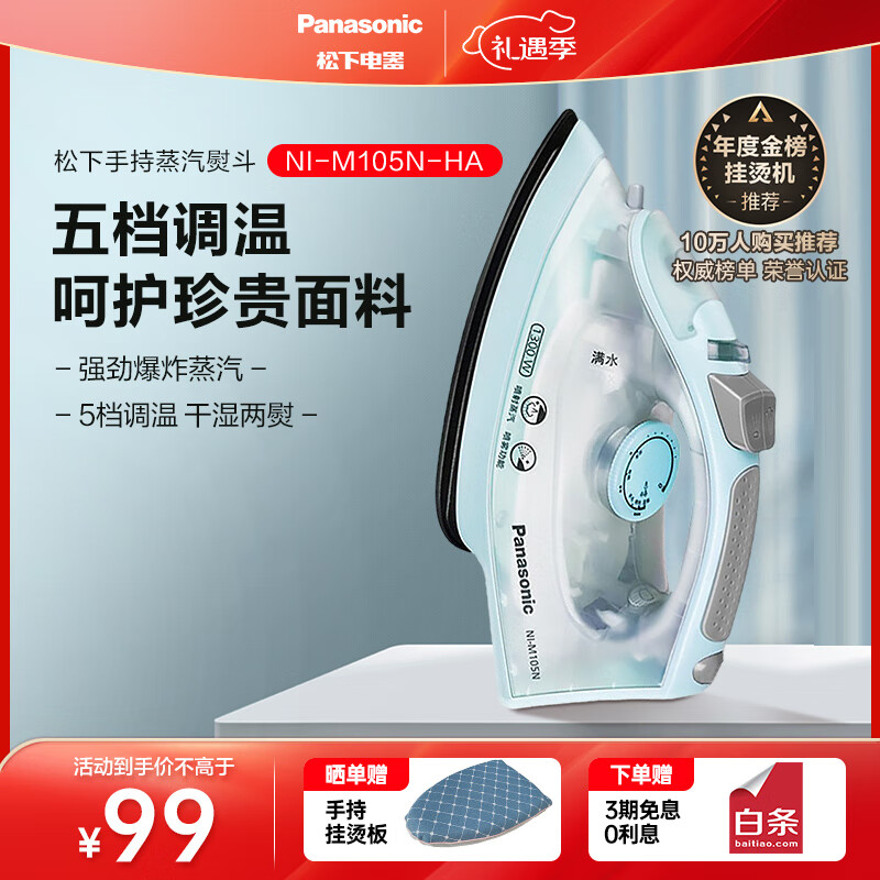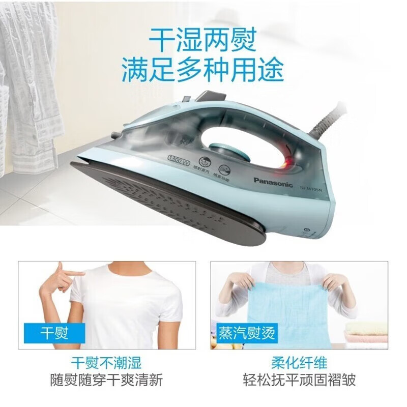 松下(Panasonic)电熨斗家用 手持蒸汽挂烫机 1300W 多档蒸汽 NI-M105N_HA 慧蓝色价格:99.00元!