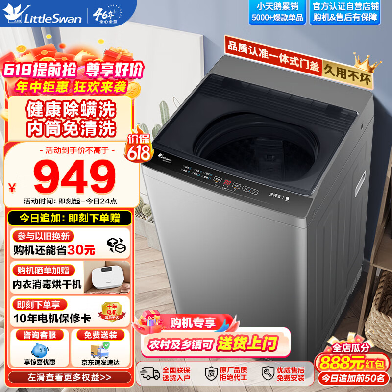 小天鹅(LittleSwan)10公斤波轮洗衣机全自动 家用节能宿舍租房 除螨内桶健康免清洗 品质电机TB100V23H-1价格:919.00元!