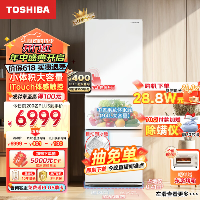东芝(TOSHIBA)【李佳琦直播间同款】小白桃 日式五门多门小户型高端家用电冰箱超薄嵌入式制冰GR-RM429WE-PG2B3价格:7367.00元!