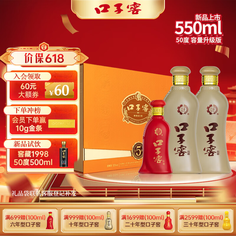 口子窖 五年型 兼香型白酒 50度 550ml*2瓶礼盒装 送礼宴请价格:288.00元!