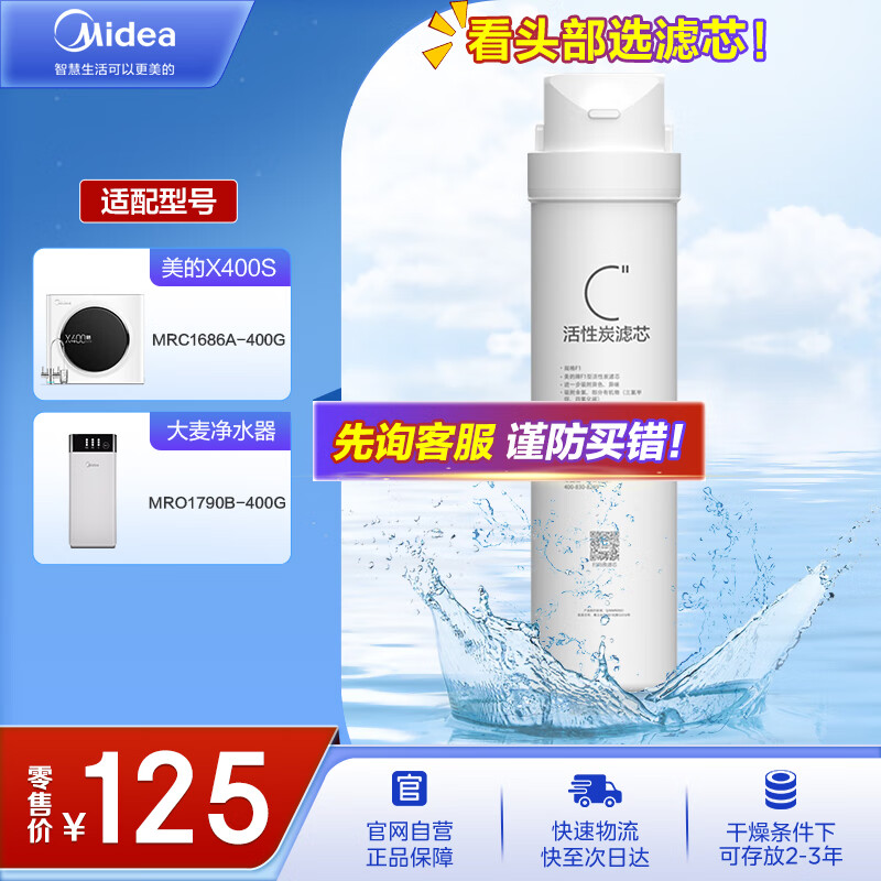 美的净水器滤芯—适用MU136-4 151-4 1790B/1686A/1598A-400G WAH75-03 WAH400-01 S1系列-后置碳滤芯价格:125.00元!