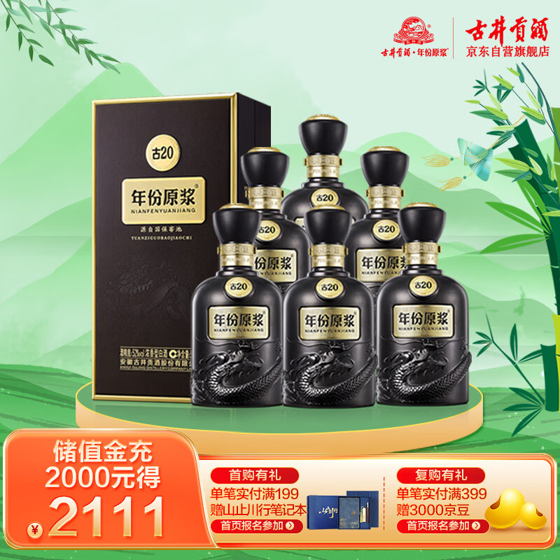 古井贡酒年份原浆 古20 浓香型白酒 52度500ml*6瓶 整箱装(内含礼品袋)价格:4800.00元!