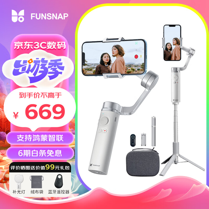 逗映(FUNSNAP)派 手机稳定器 手持云台稳定器 三轴防抖跟拍云台 全域无死角运镜 折叠收纳Combo版价格:669.00元!