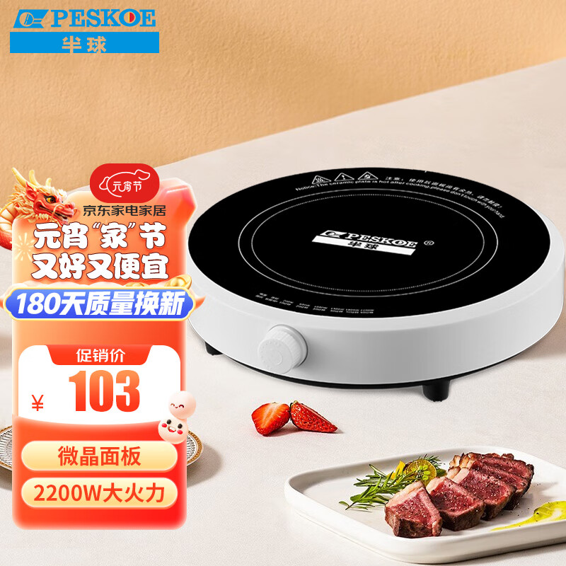半球 圆形电磁炉 家用电磁灶 多功能迷你小电炉灶 火锅炉套装 2200W无极旋钮调温 简约白【单机款】价格:109.00元!