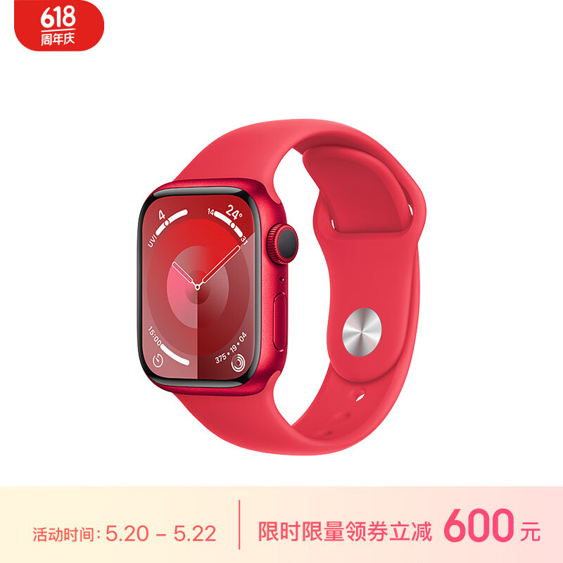 Apple/苹果 Watch Series 9 智能手表GPS款41毫米红色铝金属表壳 红色运动型表带M/L MRXH3CH/A价格:2999.00元!