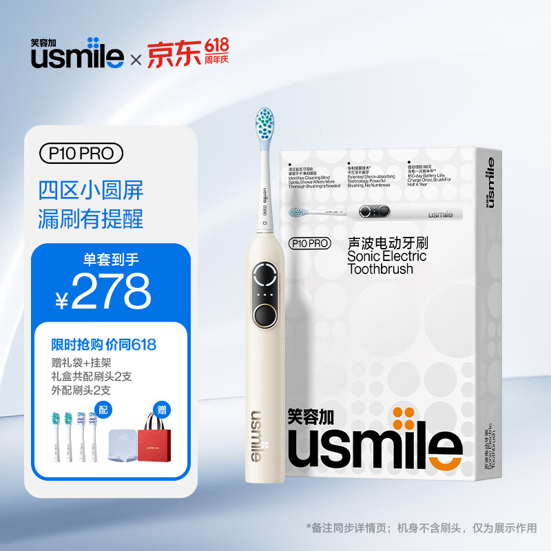 usmile成人电动牙刷 P10PRO浮光金+缓震亮白刷头2支装价格参考: