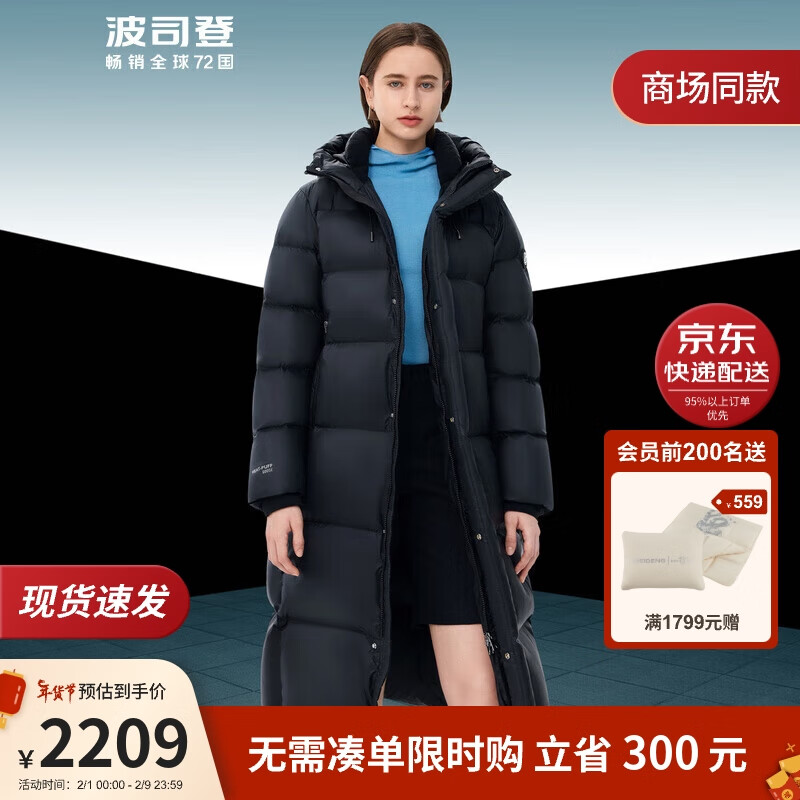 波司登冬鹅绒羽绒服女90绒加厚中长款连帽保暖舒适外套B30143130价格:2509.00元!