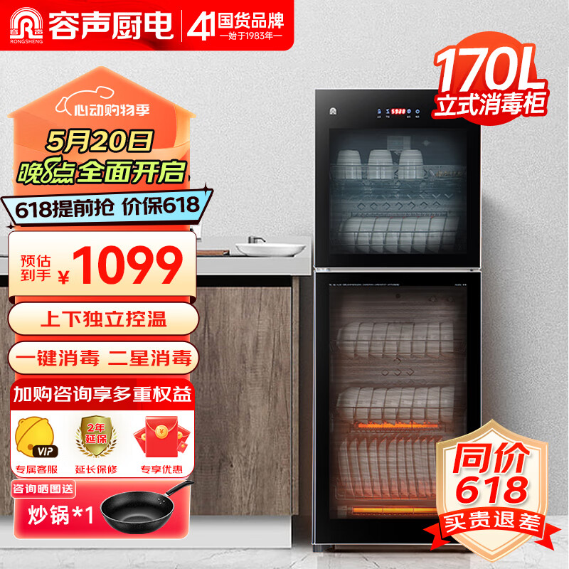 容声(RONGSHENG)消毒柜家用 立式消毒碗柜 商用 餐具茶杯碗筷厨房臭氧消毒柜170L双门大容量280-RQ230(A)价格:1099.00元!