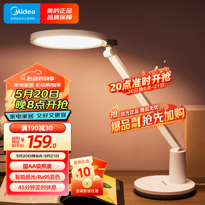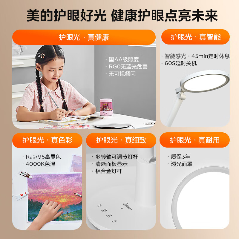 美的(Midea)护眼学习台灯国AA级学生儿童阅读床头工作书桌读写led灯君雅价格:199.00元!