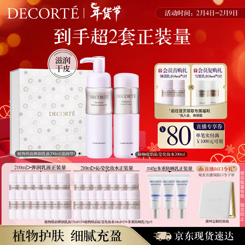 黛珂植物欣韵弹润滋润型水乳护肤品套装200ml*2 保湿化妆品情人节礼物价格:680.00元!