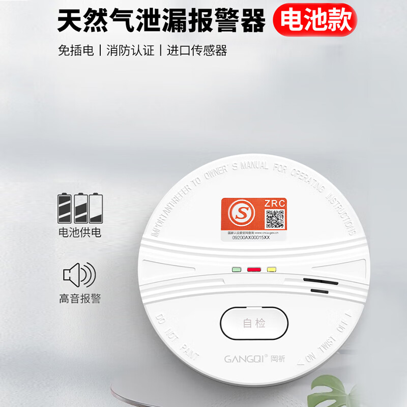岡祈(Gangqi)电池款 燃气报警器新国标天然气报警器家用商用可燃气体探测泄漏非自动切断煤气报警器检测仪价格:169.00元!